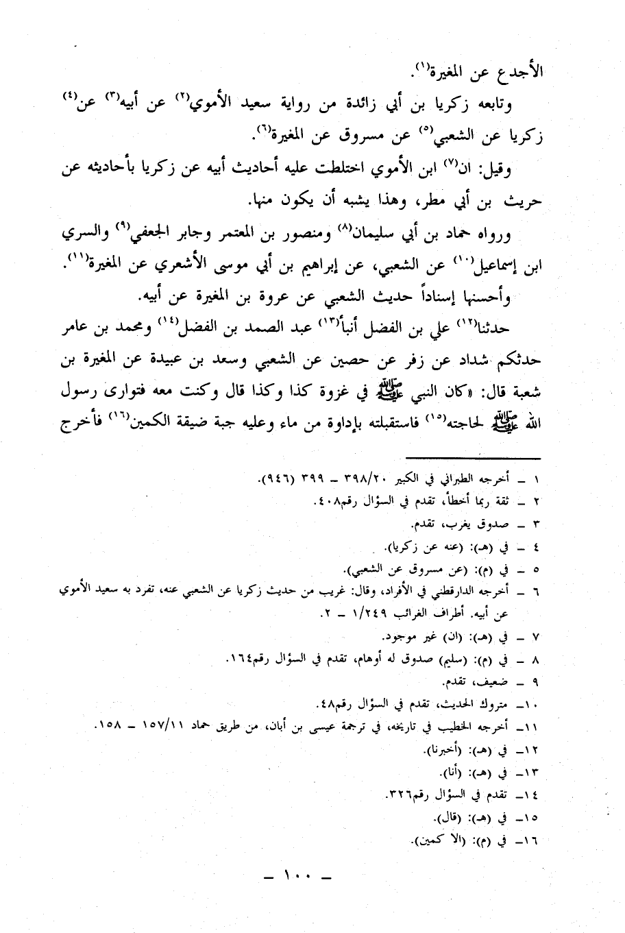 وَتَابَعَهُ زَكَرِيَّا بْنُ أَبِي زَائِدَةَ مِنْ رِوَايَةِ سَعِيدٍ الْأُمَوِيِّ، عَنْ أَبِيهِ، عَنْ زَكَرِيَّا، عَنِ الشَّعْبِيِّ، عَنْ مَسْرُوقٍ، عَنِ الْمُغِيرَةِ.