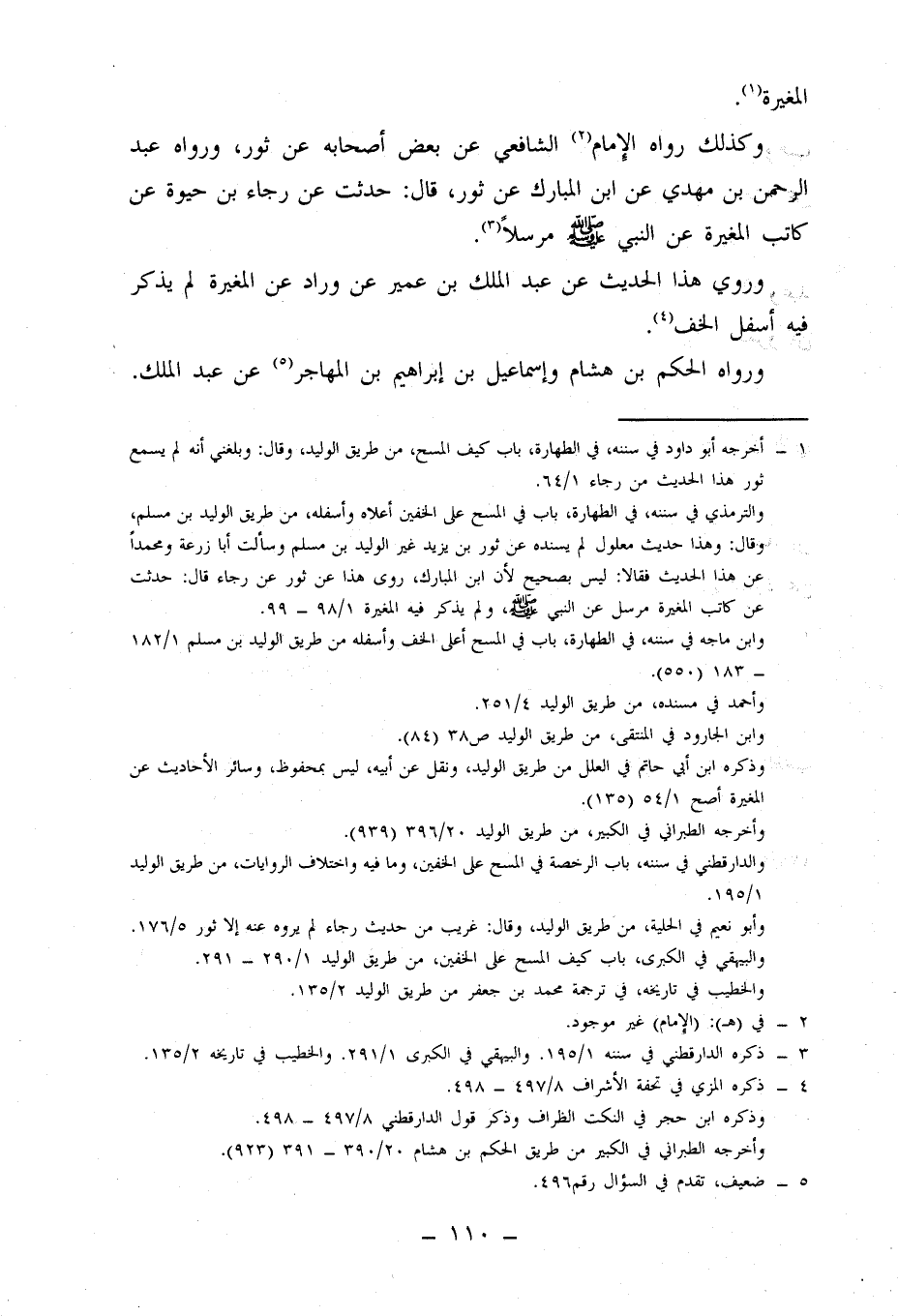 1238- وَسُئِلَ عَنْ حَدِيثِ وَرَّادٍ كَاتِبِ الْمُغِيرَةِ، عَنِ الْمُغِيرَةِ، عَنِ النَّبِيِّ صَلَّى اللَّهُ عَلَيْهِ وَسَلَّمَ فِي مَسْحِ أَعْلَى الْخُفِّ وَأَسْفَلِهِ.