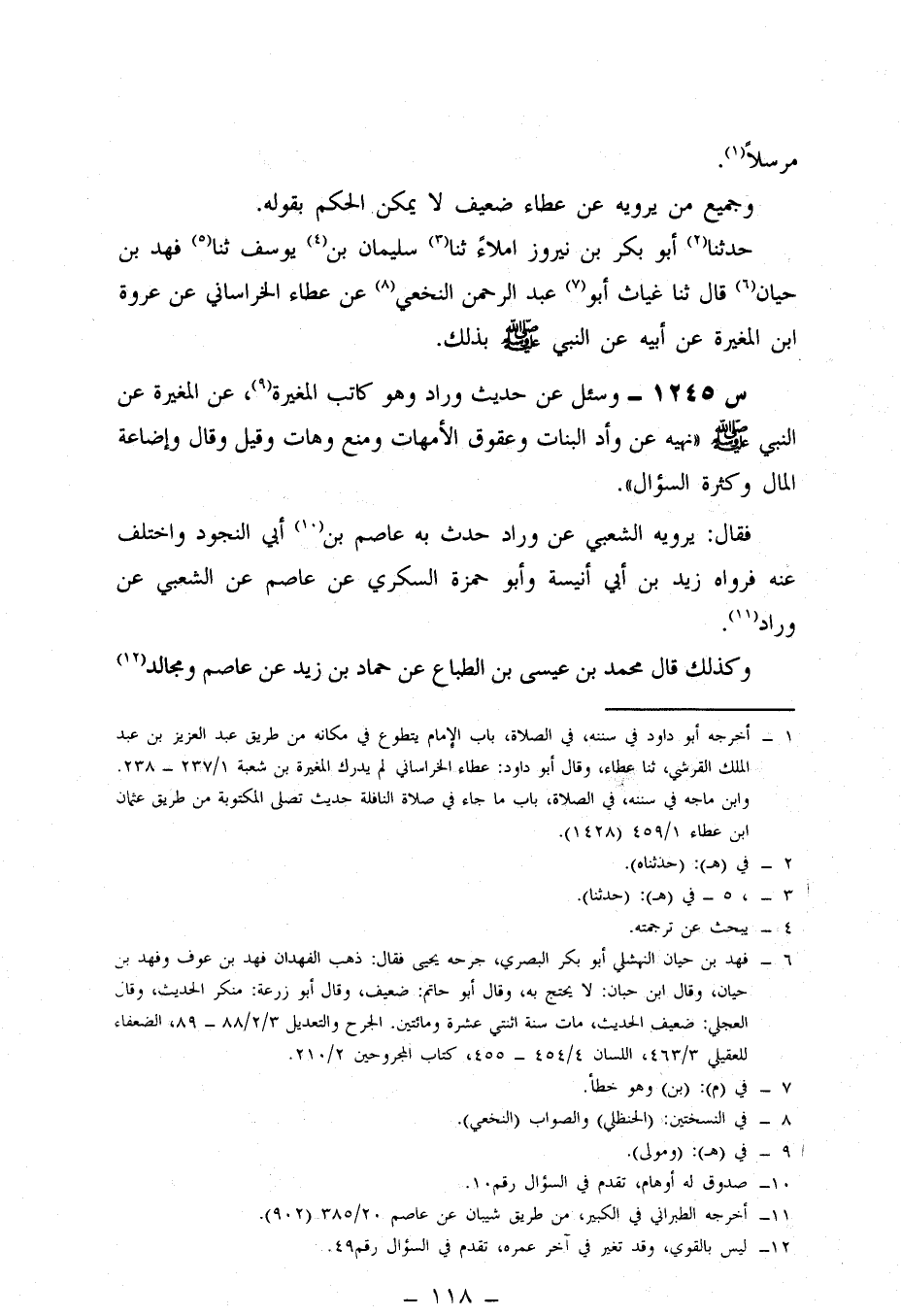 1245- وَسُئِلَ عَنْ حَدِيثِ وَرَّادٍ وَهُوَ كَاتِبُ الْمُغِيرَةِ، عَنِ الْمُغِيرَةِ، عَنِ النَّبِيِّ صَلَّى اللَّهُ عَلَيْهِ وَسَلَّمَ: نَهْيُهُ عَنْ وَأْدِ الْبَنَاتِ، وَعُقُوقِ الْأُمَّهَاتِ، وَمَنْعٍ وَهَاتِ، وَقِيلَ وَقَالَ، وَإِضَاعَةِ الْمَالِ، وَكَثْرَةِ السُّؤَالِ.