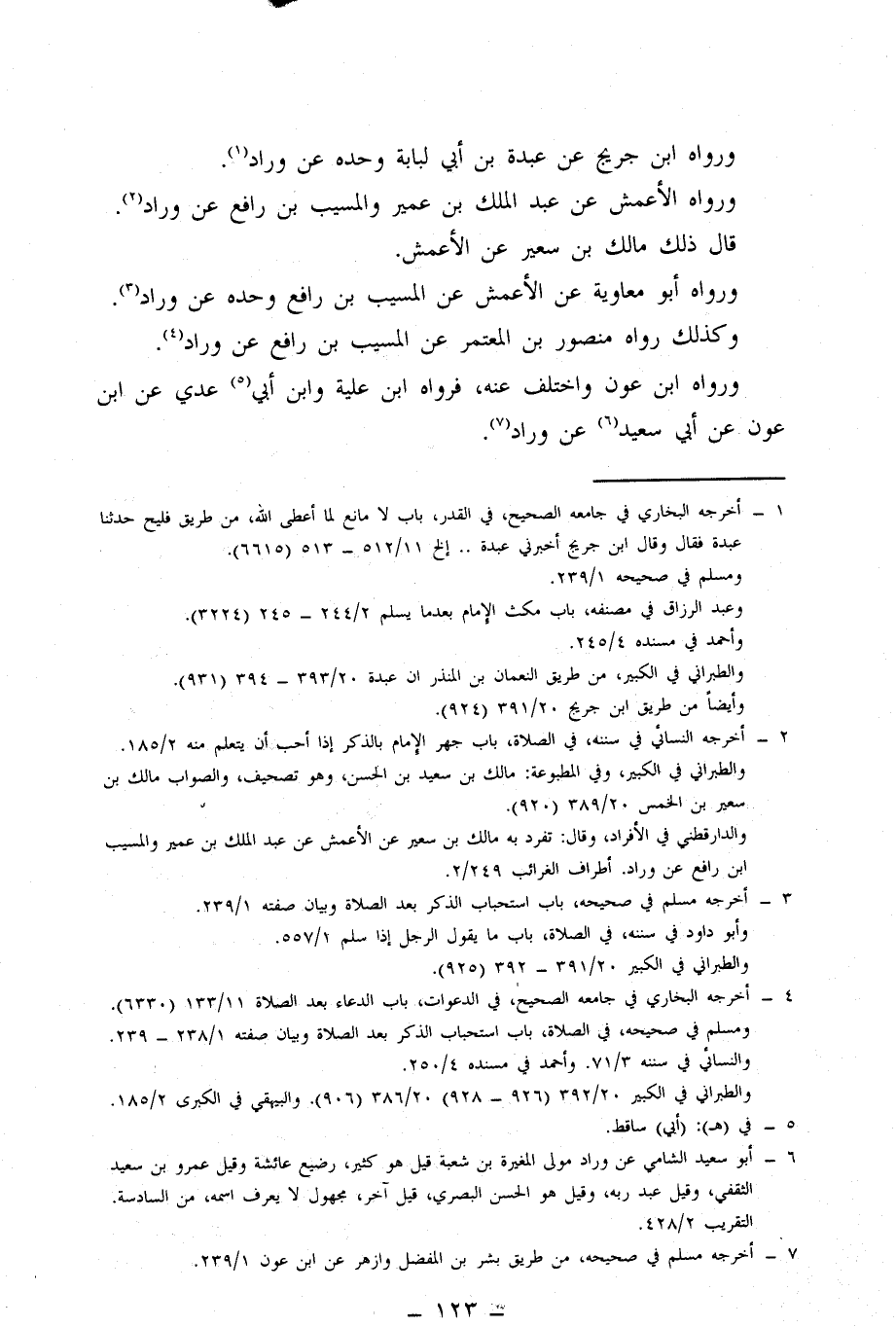 وَكَذَلِكَ رَوَاهُ مَنْصُورُ بْنُ الْمُعْتَمِرِ، عَنِ الْمُسَيَّبِ بْنِ رَافِعٍ، عَنْ وَرَّادٍ.