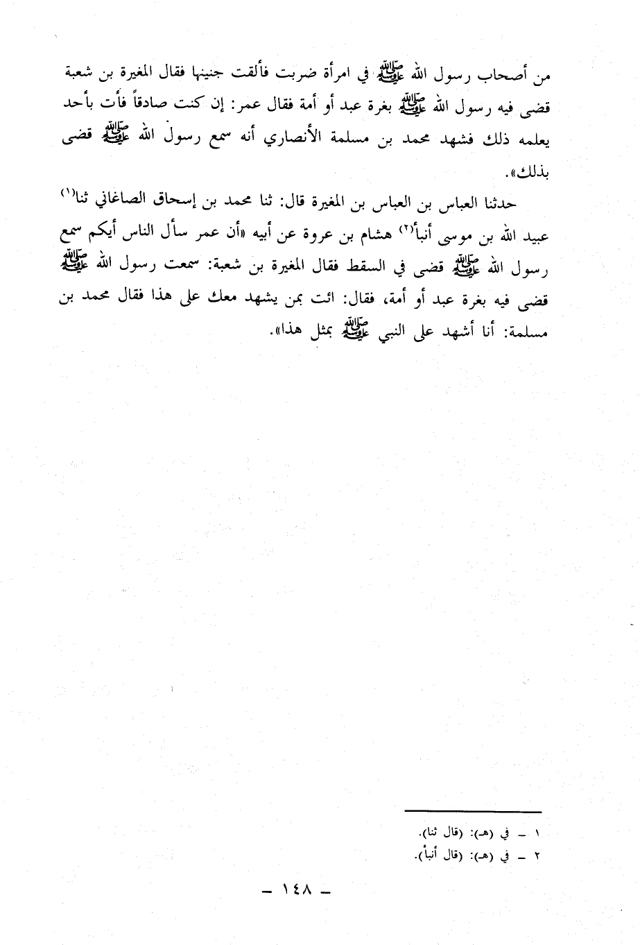حَدَّثَنَا الْعَبَّاسُ بْنُ الْعَبَّاسِ بْنِ الْمُغِيرَةِ، قَالَ: حدثنا محمد بن إسحاق الصاغاني، حدثنا عبيد الله بن موسى، أنبأنا هِشَامُ بْنُ عُرْوَةَ، عَنْ أَبِيهِ أَنَّ عُمَرَ سَأَلَ النَّاسَ أَيُّكُمْ سَمِعَ رَسُولَ اللَّهِ صَلَّى اللَّهُ عَلَيْهِ وَسَلَّمَ قَضَى فِي السَّقْطِ فَقَالَ الْمُغِيرَةُ بْنُ شُعْبَةَ: سَمِعْتُ رَسُولَ اللَّهِ صَلَّى الله عليه وسلم قضى فيه بغرة عبد أَوْ أَمَةٍ، فَقَالَ: ائْتِ بِمَنْ يَشْهَدُ مَعَكَ عَلَى هَذَا، فَقَالَ مُحَمَّدُ بْنُ مَسْلَمَةَ: أَنَا أَشْهَدُ عَلَى النَّبِيِّ صَلَّى اللَّهُ عَلَيْهِ وَسَلَّمَ بمثل هذا.