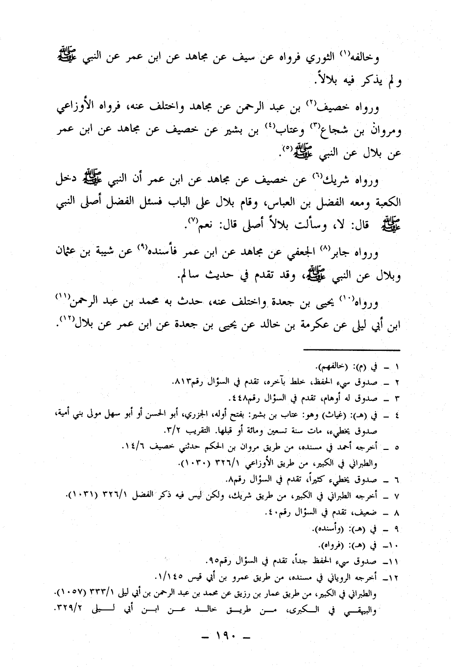 فَرَوَاهُ الْأَوْزَاعِيُّ، وَمَرْوَانُ بْنُ شُجَاعٍ، وَعَتَّابُ بْنُ بَشِيرٍ، عَنْ خَصِيفٍ، عَنْ مُجَاهِدٍ، عَنِ ابْنِ عُمَرَ، عَنْ بِلَالٍ، عَنِ النَّبِيِّ صَلَّى اللَّهُ عَلَيْهِ وَسَلَّمَ.