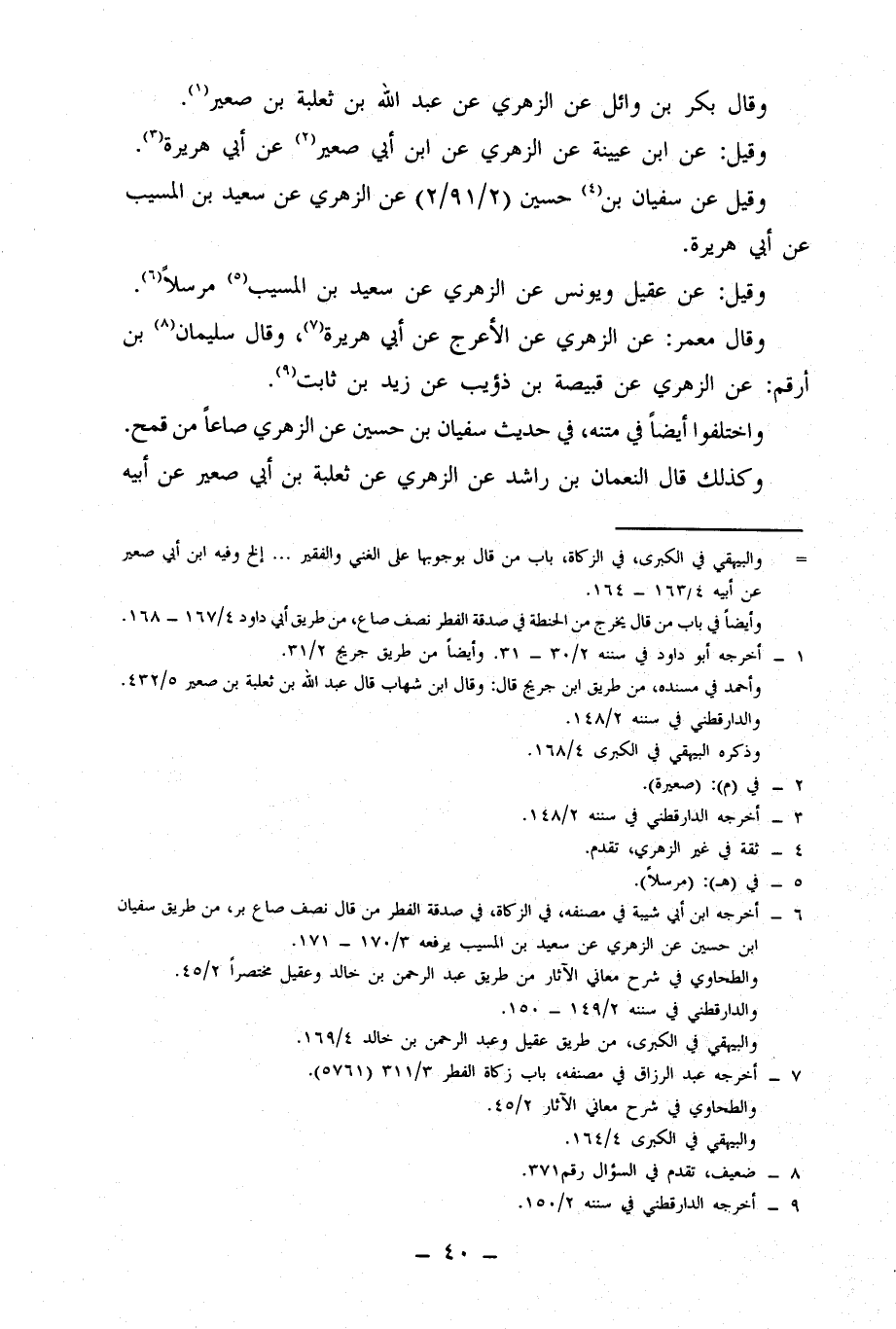 وَكَذَلِكَ قَالَ النُّعْمَانُ بْنُ رَاشِدٍ، عَنِ الزُّهْرِيِّ، عَنْ ثَعْلَبَةَ بْنِ أَبِي صُعَيْرٍ، عَنْ أَبِيهِ؛ "صَاعٌ مِنْ قَمْحٍ عَنْ كُلِّ إِنْسَانٍ".