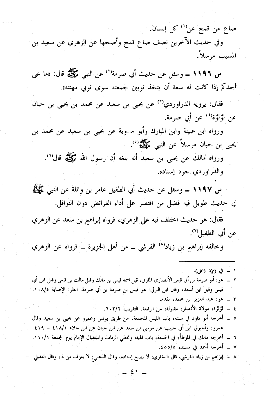 1197- وَسُئِلَ عَنْ حَدِيثِ أَبِي الطُّفَيْلِ عَامِرِ بْنِ وَاثِلَةَ، عَنِ النَّبِيِّ صَلَّى اللَّهُ عَلَيْهِ وَسَلَّمَ فِي حَدِيثٍ طَوِيلٍ فِيهِ فَضْلُ مَنِ اقْتَصَرَ عَلَى أَدَاءِ الْفَرَائِضِ دُونَ النَّوَافِلِ.