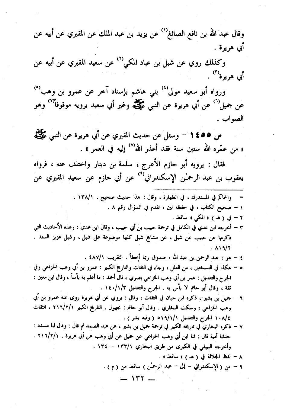 1455- وسئل عن حديث المقبري، عن أبي هريرة، عن النبي صلى الله عليه وسلم: من عَمَّرَهُ اللَّهُ سِتِّينَ سَنَةً، فَقَدْ أَعْذَرَ اللَّهُ إِلَيْهِ فِي الْعُمْرِ.