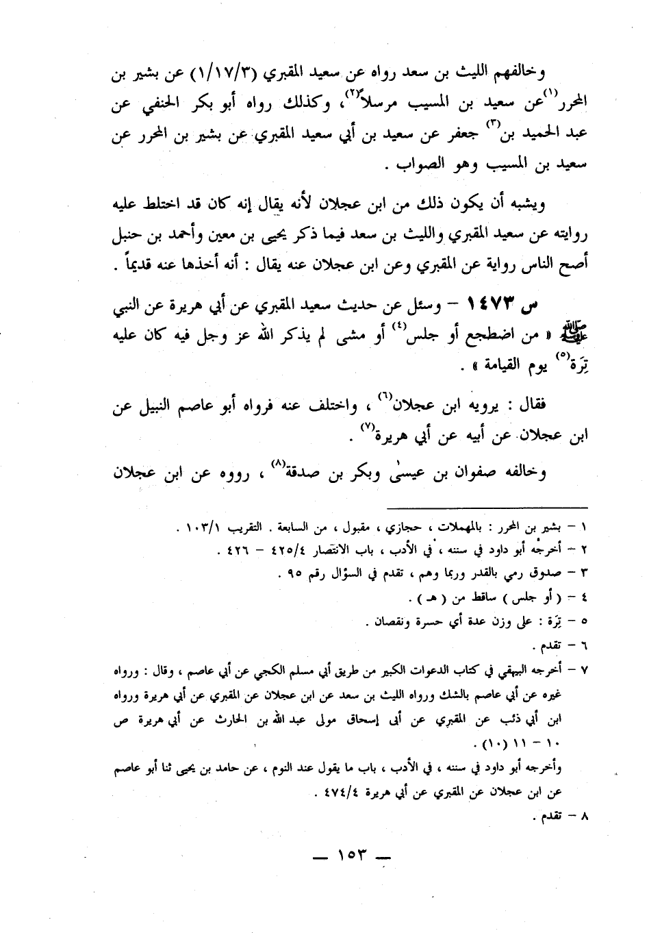 وَخَالَفَهُمُ اللَّيْثُ بْنُ سَعْدٍ رَوَاهُ، عَنْ سَعِيدٍ الْمَقْبُرِيِّ، عَنْ بَشِيرِ بْنِ الْمُحَرَّرِ، عَنْ سَعِيدِ بْنِ الْمُسَيِّبِ مُرْسَلًا.