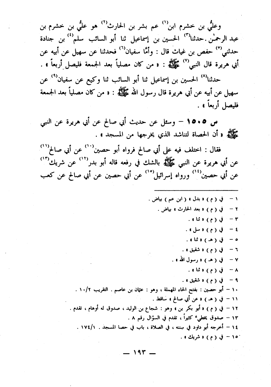 1505- وَسُئِلَ عَنْ حَدِيثِ أَبِي صَالِحٍ، عَنْ أَبِي هريرة، عن النبي صلى الله عليه وسلم: إِنَّ الْحَصَاةَ لَتُنَاشِدُ الَّذِي يُخْرِجُهَا مِنَ الْمَسْجِدِ.