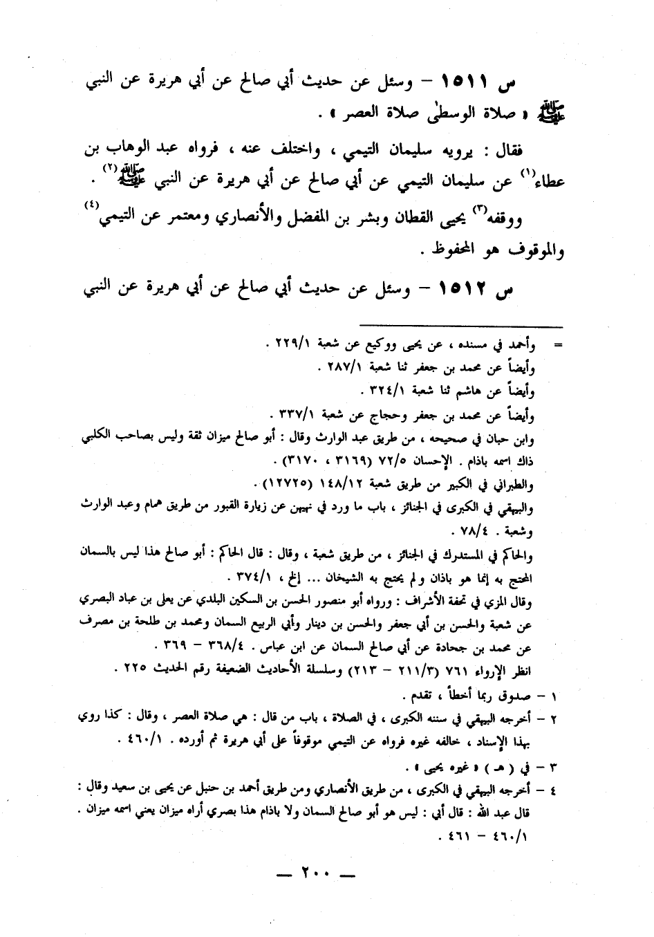 1511- وَسُئِلَ عَنْ حَدِيثِ أَبِي صَالِحٍ، عَنْ أَبِي هريرة، عن النبي صلى الله عليه وسلم: صَلَاةُ الْوُسْطَى صَلَاةُ الْعَصْرِ.