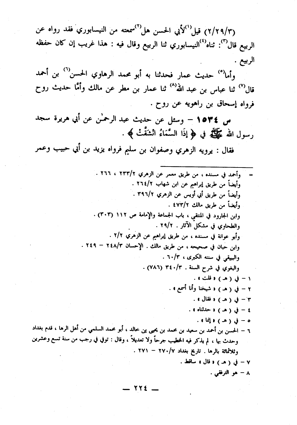 1534- وَسُئِلَ عَنْ حَدِيثِ عَبْدِ الرَّحْمَنِ، عَنْ أَبِي هُرَيْرَةَ سَجَدَ رَسُولُ اللَّهِ صَلَّى اللَّهُ عَلَيْهِ وَسَلَّمَ فِي: {إِذَا السَّمَاءُ انْشَقَّتْ} .