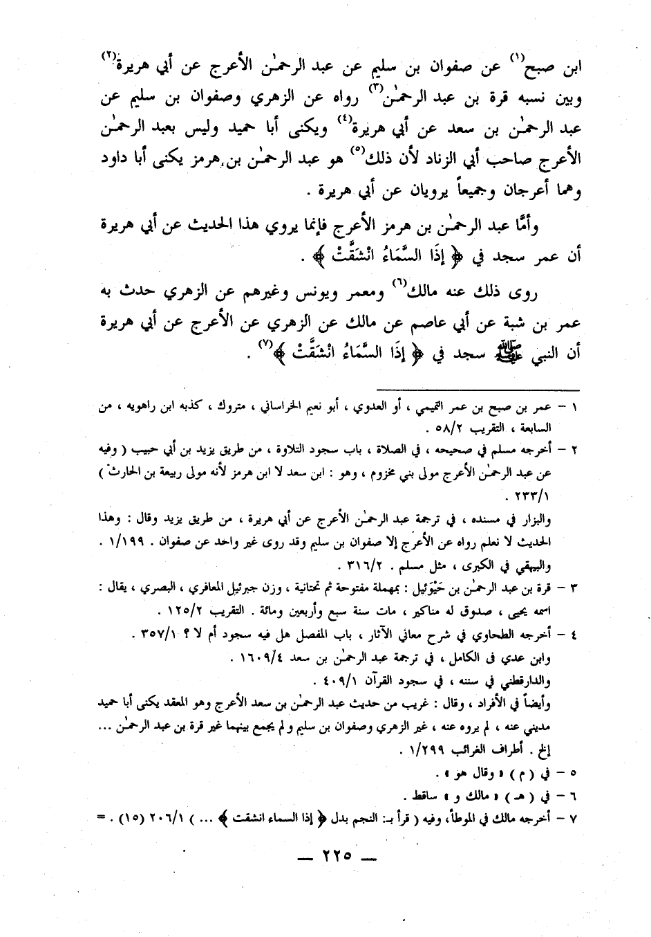 وَأَمَّا عَبْدُ الرَّحْمَنِ بْنُ هُرْمُزَ الْأَعْرَجُ، فَإِنَّمَا يَرْوِي هَذَا الْحَدِيثَ، عَنْ أَبِي هُرَيْرَةَ: أَنَّ عُمَرَ سَجَدَ فِي: {إِذَا السَّمَاءُ انْشَقَّتْ} .