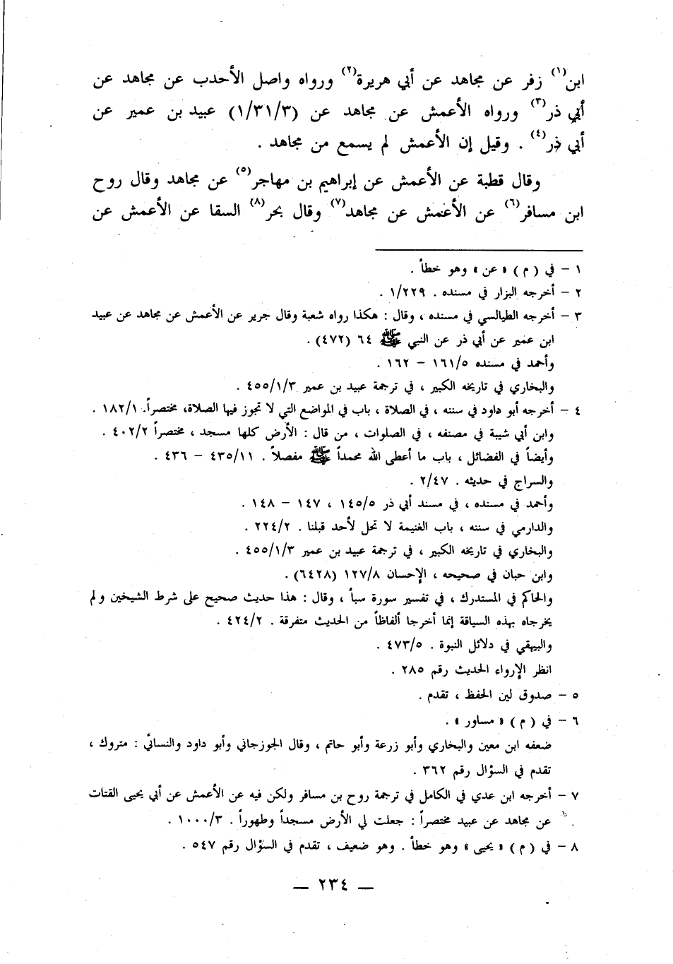 وَقَالَ رَوْحُ بْنُ مُسَافِرٍ، عَنِ الْأَعْمَشِ، عن مجاهد.