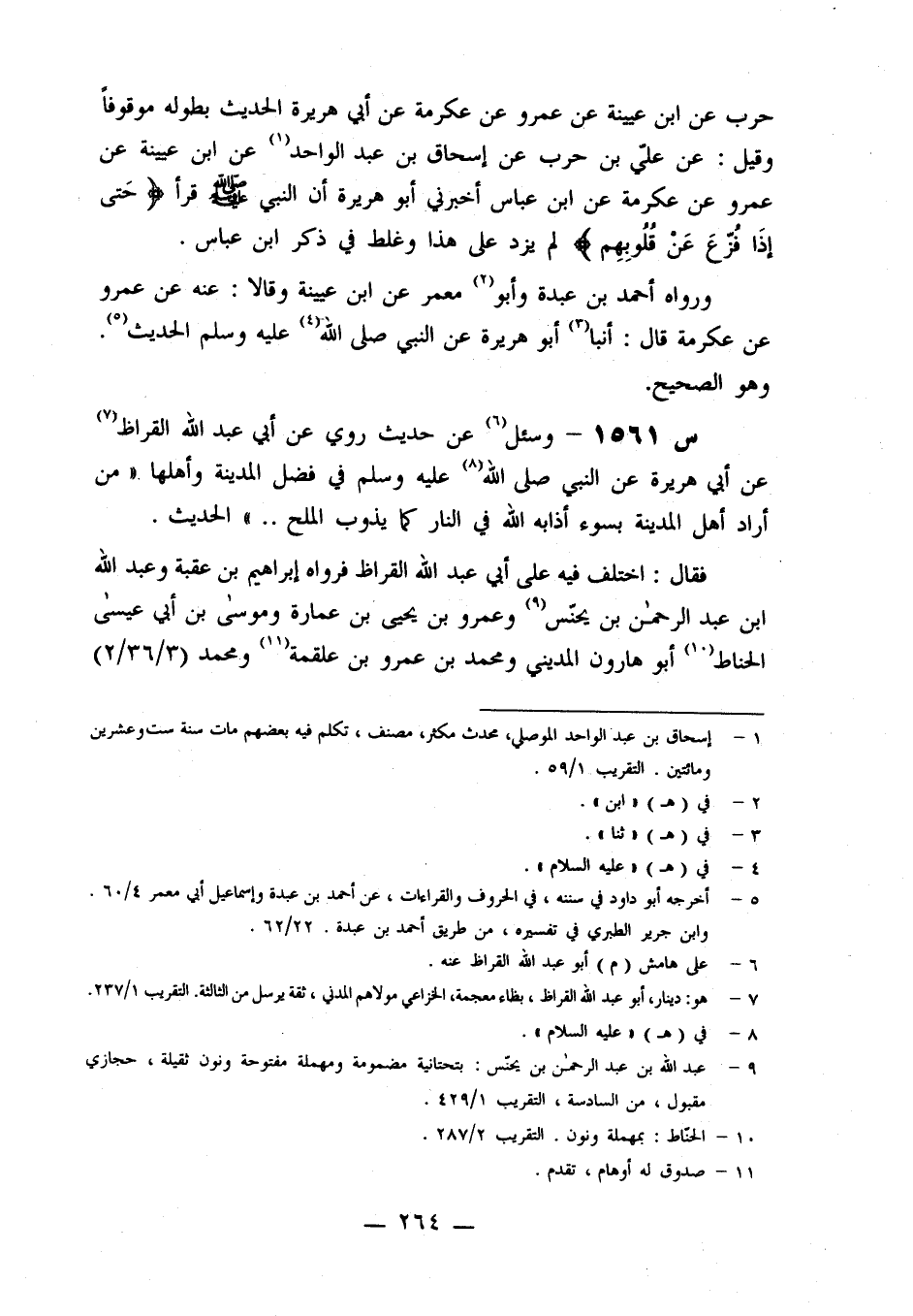 1561- وَسُئِلَ عَنْ حَدِيثٍ رُوِيَ عَنْ أَبِي عَبْدِ اللَّهِ الْقَرَّاظِ، عَنْ أَبِي هُرَيْرَةَ، عَنِ النَّبِيِّ صَلَّى اللَّهُ عَلَيْهِ وَسَلَّمَ فِي فَضْلِ الْمَدِينَةِ، وَأَهْلِهَا: مَنْ أَرَادَ أَهْلَ الْمَدِينَةِ بِسُوءٍ، أَذَابَهُ اللَّهُ فِي النَّارِ كَمَا يَذُوبُ الْمَلْحُ ... الْحَدِيثَ.