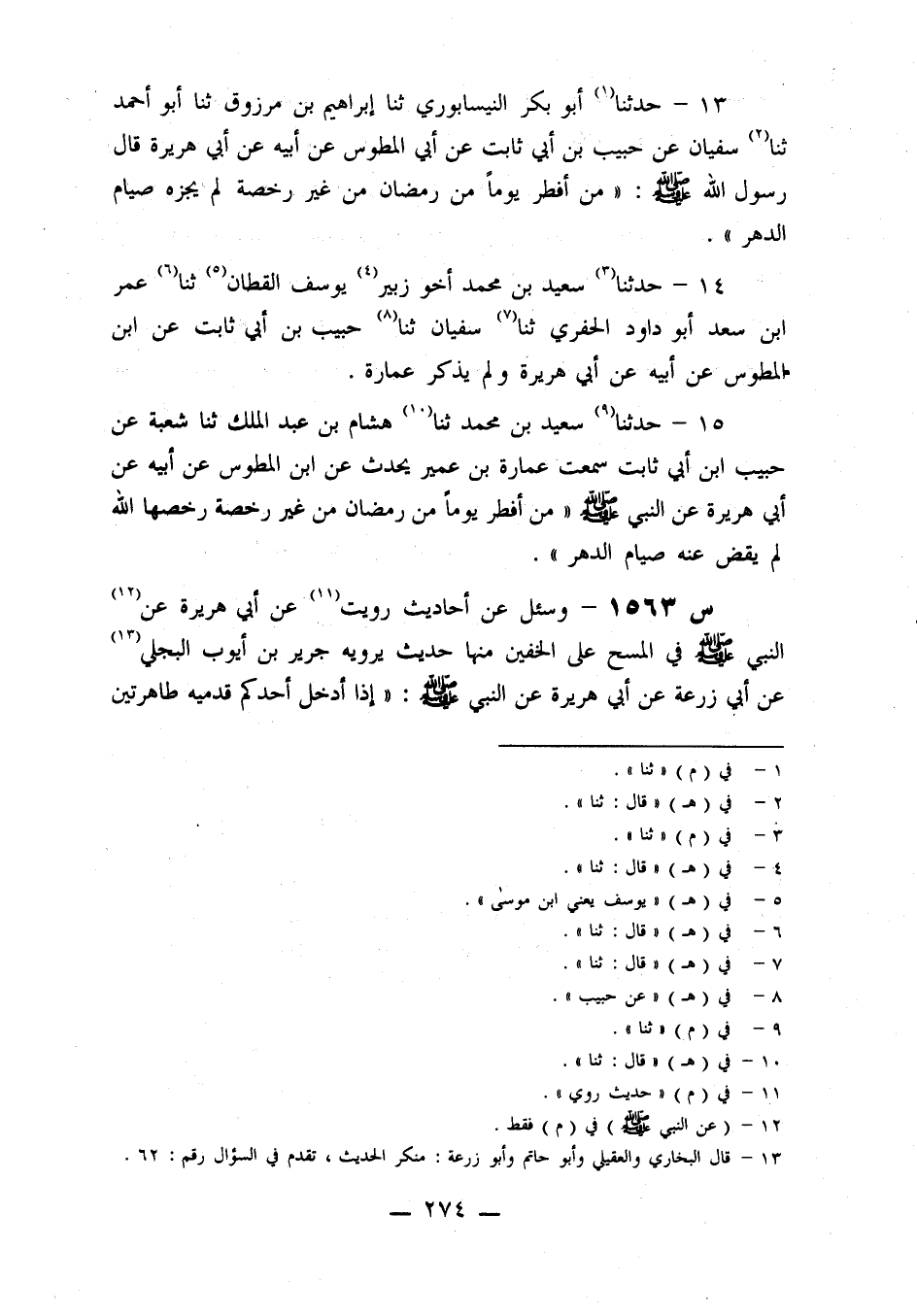 13- حدثنا أبو بكر النيسابوري حدثنا إبراهيم بن مرزوق، حدثنا أبو أحمد، حدثنا سفيان، عن حبيب بن أبي ثابت، عن أبي المطوس، عن أبيه، عن أبي هريرة، قال رسول الله صلى الله عليه وسلم: من أفطر يوما من رمضان من غير رُخْصَةٍ، لَمْ يُجْزِهِ صِيَامُ الدَّهْرِ.