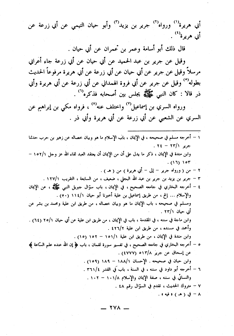وَقِيلَ: عَنْ جَرِيرِ بْنِ عَبْدِ الْحَمِيدِ، عَنْ أَبِي حَيَّانَ، عَنْ أَبِي زُرْعَةَ، جَاءَ أَعْرَابِيٌّ مُرْسَلًا.