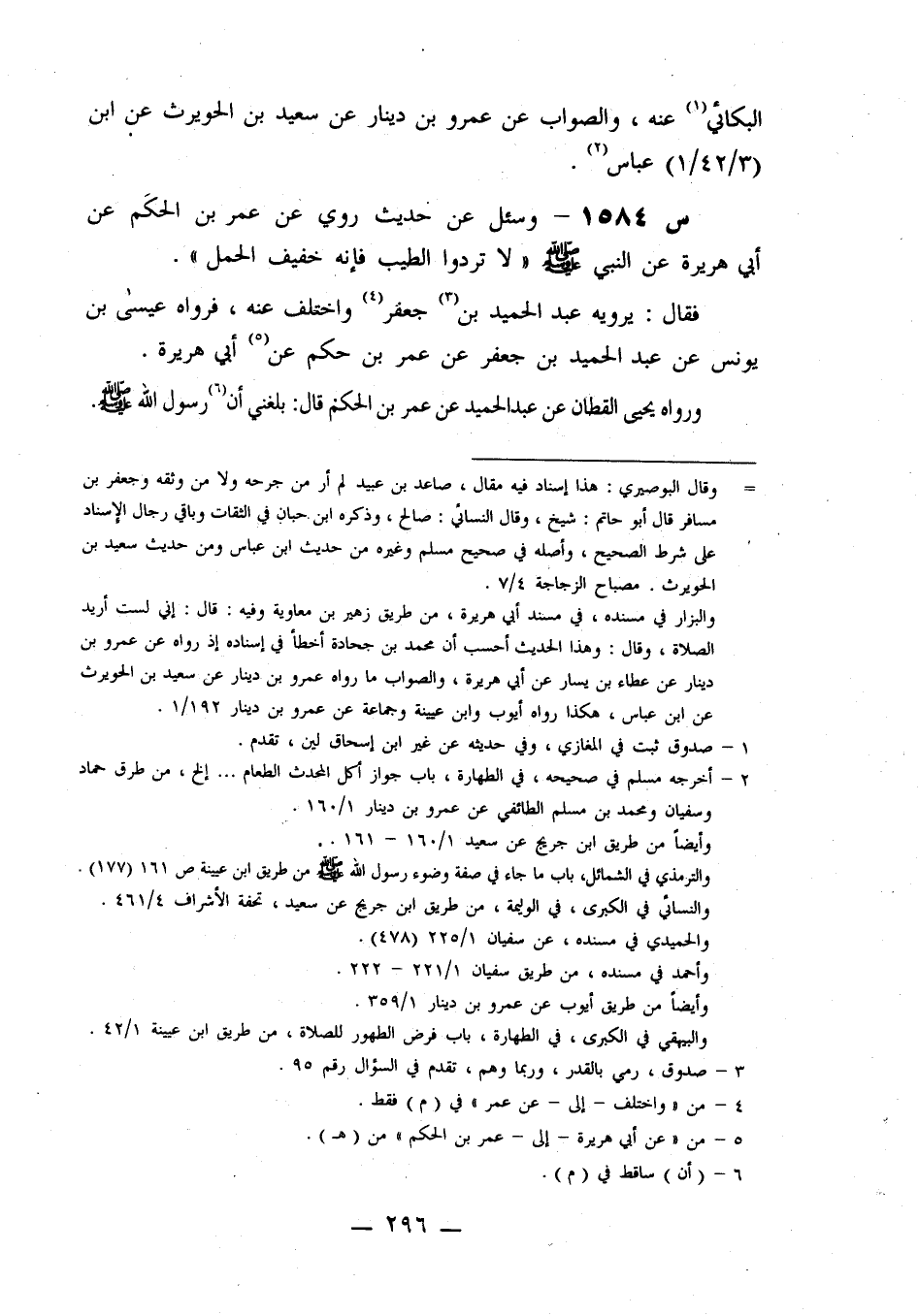 1584- وَسُئِلَ عَنْ حَدِيثٍ رُوِيَ عَنْ عُمَرَ بْنِ الْحَكَمِ، عَنْ أَبِي هُرَيْرَةَ، عَنِ النَّبِيِّ صَلَّى اللَّهُ عَلَيْهِ وَسَلَّمَ: لَا تَرُدُّوا الطِّيبَ، فَإِنَّهُ خَفِيفُ الْحَمْلِ.