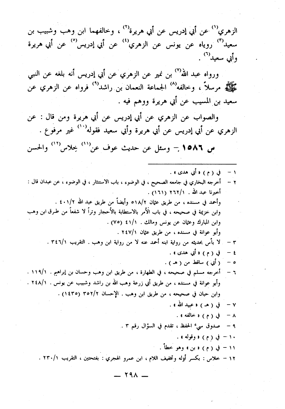 وَخَالَفَهُ الْجَمَاعَةُ النُّعْمَانُ بْنُ رَاشِدٍ فَرَوَاهُ، عَنِ الزُّهْرِيِّ، عَنْ سَعِيدِ بْنِ الْمُسَيِّبِ، عن أبي هريرة، ووهم فيه.