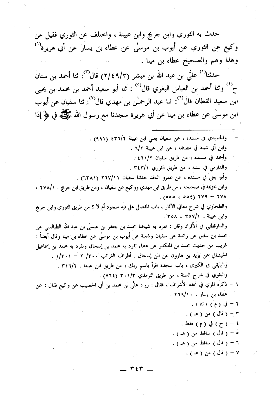 حَدَّثَنَا عَلِيُّ بْنُ عَبْدِ اللَّهِ بْنِ مُبَشِّرٍ، قال: حدثنا أحمد بن سنان ح وحدثنا أحمد بن العباس البغوي، قال: حدثنا أَبُو سَعِيدٍ أَحْمَدُ بْنُ مُحَمَّدِ بْنِ يَحْيَى بْنِ سَعِيدٍ القطان، قال: حدثنا عبد الرحمن بن مهدي، قال: حدثنا سُفْيَانُ، عَنْ أَيُّوبَ بْنِ مُوسَى، عَنْ عَطَاءِ بْنِ مِينَا، عَنْ أَبِي هُرَيْرَةَ، سَجَدْنَا مَعَ رَسُولِ اللَّهِ صَلَّى اللَّهُ عَلَيْهِ وَسَلَّمَ في: {إذا السماء انشقت} ، و {اقرأ بِاسْمِ رَبِّكَ الَّذِي خَلَقَ} .