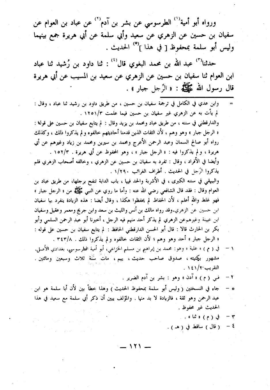 حَدَّثَنَا عبد الله بن محمد البغوي، قال: حدثنا داود بن رشيد، حدثنا عباد بن العوام، حدثنا سفيان بن حسين، عن الزهري، عن سعيد بْنِ الْمُسَيِّبِ، عَنْ أَبِي هُرَيْرَةَ، قَالَ رَسُولُ اللَّهِ صَلَّى اللَّهُ عَلَيْهِ وَسَلَّمَ: الرِّجْلُ جُبَارٌ.