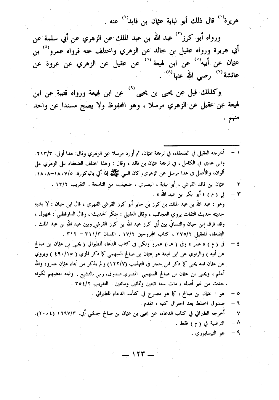 فَرَوَاهُ عَمْرُو بْنُ عُثْمَانَ، عَنْ أَبِيهِ، عَنِ ابْنِ لَهِيعَةَ، عَنْ عُقَيْلٍ، عَنِ الزُّهْرِيِّ، عَنْ عُرْوَةَ، عَنْ عَائِشَةَ رَضِيَ الله عَنْهَا.