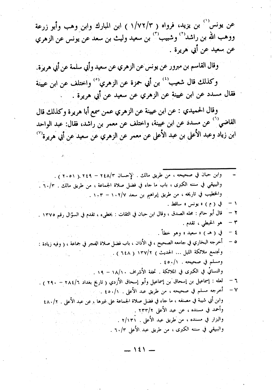 وَاخْتُلِفَ عَنْ يُونُسَ بْنِ يَزِيدَ، فَرَوَاهُ ابْنُ الْمُبَارَكِ، وَابْنُ وَهْبٍ، وَأَبُو زُرْعَةَ، وَوَهْبُ اللَّهِ بْنُ رَاشِدٍ، وَشَبِيبُ بْنُ سَعِيدٍ، وَلَيْثُ بْنُ سَعْدٍ، عَنْ يُونُسَ، عَنِ الزُّهْرِيِّ، عَنْ سَعِيدٍ، عَنْ أَبِي هُرَيْرَةَ.