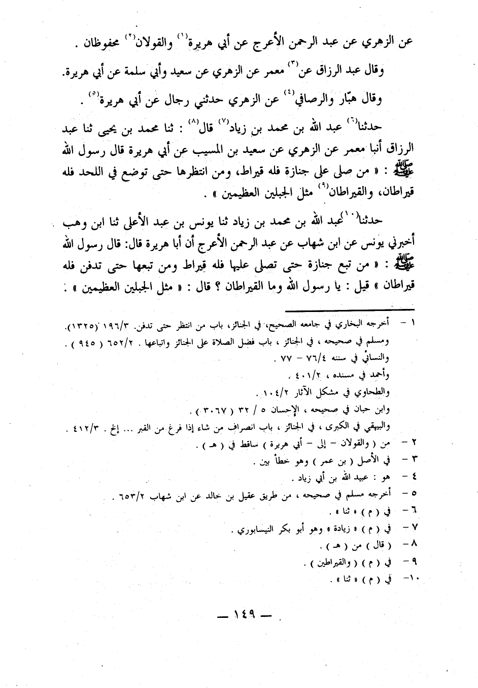 حَدَّثَنَا عَبْدُ اللَّهِ بْنُ محمد بن زياد، قال: حدثنا محمد بن يحيى، حدثنا عَبْدُ الرَّزَّاقِ، أَنْبَأَنَا مَعْمَرٌ، عَنِ الزُّهْرِيِّ، عَنِ سعيد بن المسيب، عن أبي هريرة، قال رسول الله صلى الله عليه وسلم: من صلى على جنازة فَلَهُ قِيرَاطٌ، وَمَنِ انْتَظَرَهَا حَتَّى تُوضَعَ فِي اللَّحْدِ فَلَهُ قِيرَاطَانِ، وَالْقِيرَاطَانِ مِثْلُ الْجَبَلَيْنِ الْعَظِيمَيْنِ.