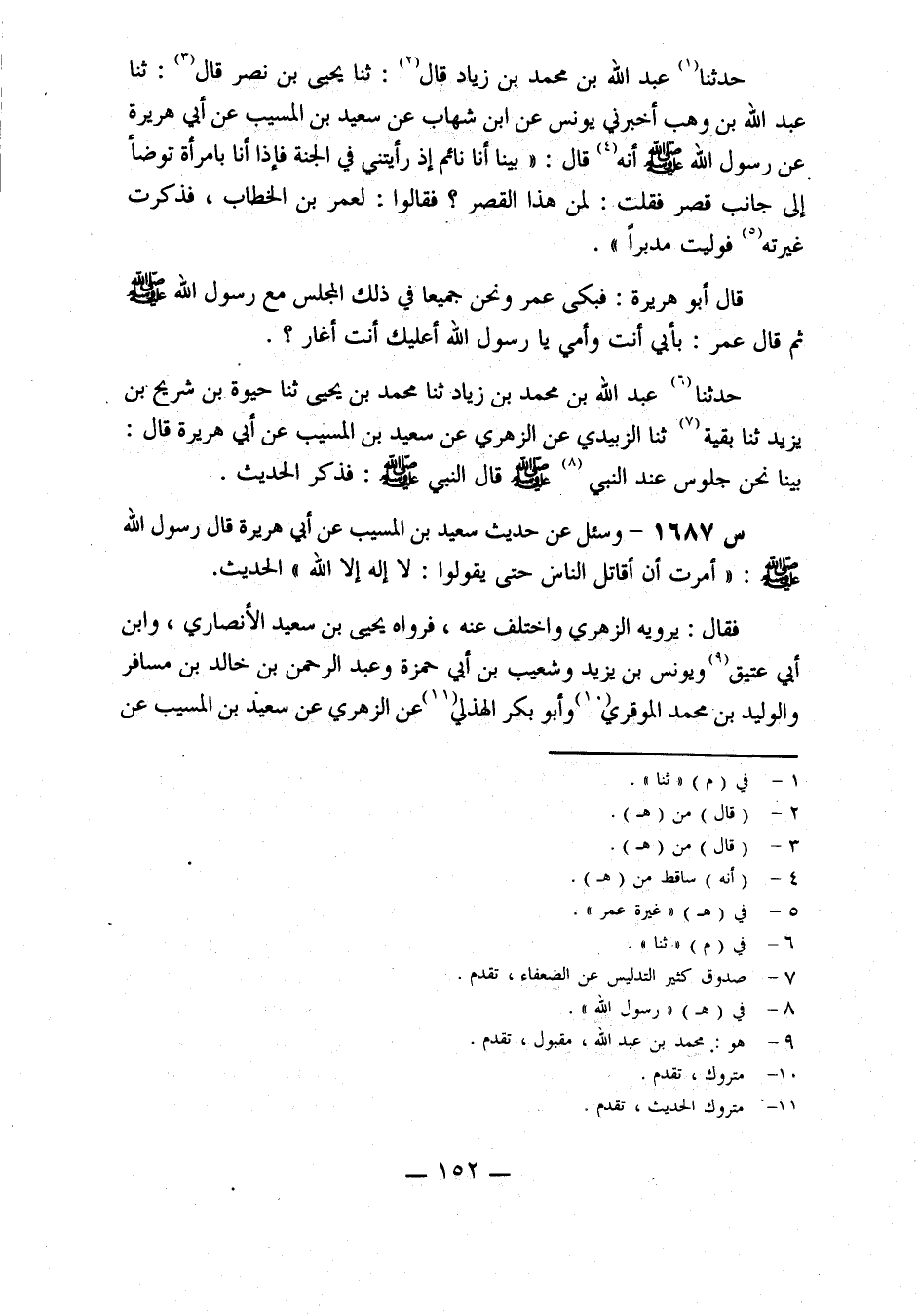 1687- وسئل عن حديث سعيد بن المسيب، عن أبي هريرة، قال رسول الله صلى الله عَلَيْهِ وَسَلَّمَ: أُمِرْتُ أَنْ أُقَاتِلَ النَّاسَ حَتَّى يَقُولُوا: لَا إِلَهَ إِلَّا اللَّهُ ... الْحَدِيثَ.