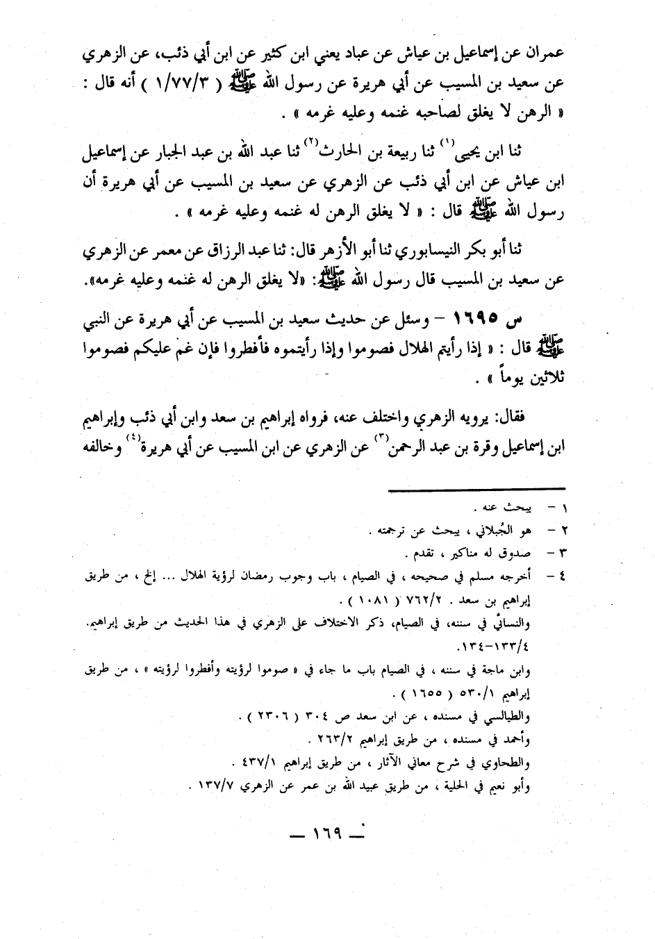1695- وسئل عن حديث سعيد بن المسيب، عن أبي هريرة، عن النبي صلى الله عليه وَسَلَّمَ، قَالَ: إِذَا رَأَيْتُمُ الْهِلَالَ فَصُومُوا، وَإِذَا رَأَيْتُمُوهُ فَأَفْطِرُوا فَإِنْ غُمَّ عَلَيْكُمْ فَصُومُوا ثَلَاثِينَ يَوْمًا.