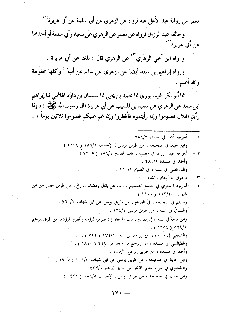 حدثنا أبو بكر النيسابوري، حدثنا محمد بن يحيى، حدثنا سليمان بن داود الهاشمي، حدثنا إبراهيم بن سعد، عن الزهري، عن سعيد بْنِ الْمُسَيِّبِ، عَنْ أَبِي هُرَيْرَةَ، قَالَ رَسُولُ الله صلى الله عليه وسلم: إذا رأيتم الْهِلَالَ فَصُومُوا، وَإِذَا رَأَيْتُمُوهُ فَأَفْطِرُوا، وَإِنْ غُمَّ عليكم فصوموا ثلاثين يوما.