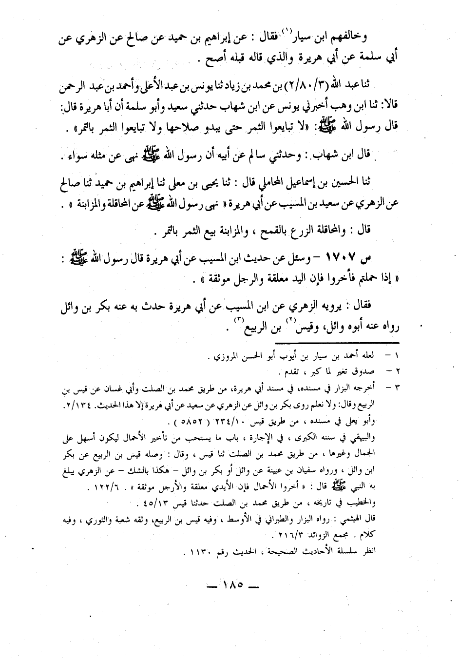 حدثنا الحسين بن إسماعيل المحاملي، قال: حدثنا يحيى بن معلى، حدثنا إبراهيم بن حميد، حدثنا صالح، عن الزهري، عن سعيد بن المسيب، عن أبي هريرة: نَهَى رَسُولُ اللَّهِ صَلَّى اللَّهُ عَلَيْهِ وَسَلَّمَ عَنِ الْمُحَاقَلَةِ، وَالْمُزَابَنَةِ.