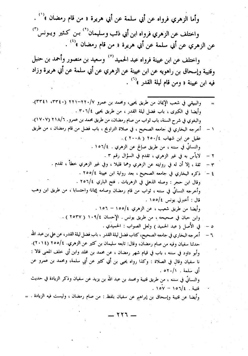 وَاخْتُلِفَ عَنِ ابْنِ عُيَيْنَةَ، فَرَوَاهُ عَبْدُ الْحَمِيدِ، وَسَعِيدُ بْنُ مَنْصُورٍ، وَأَحْمَدُ بْنُ حَنْبَلٍ، وَقُتَيْبَةُ، وَإِسْحَاقُ بْنُ رَاهَوَيْهِ، عَنِ ابْنِ عُيَيْنَةَ، عَنِ الزُّهْرِيِّ، عَنْ أَبِي سَلَمَةَ، عَنْ أَبِي هُرَيْرَةَ، وَزَادَ فِيهِ ابْنُ عُيَيْنَةَ: وَمَنْ قَامَ لَيْلَةَ الْقَدْرِ.