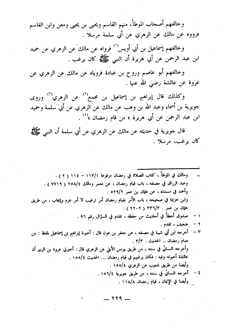 وَكَذَلِكَ قَالَ إِبْرَاهِيمُ بْنُ إِسْمَاعِيلَ بْنِ مُجَمِّعٍ، عَنِ الزُّهْرِيِّ، وَرَوَى جُوَيْرِيَةُ بْنُ أَسْمَاءَ، وَعَبْدُ اللَّهِ بْنُ وَهْبٍ، عَنْ مَالِكٍ، عَنِ الزُّهْرِيِّ، عَنْ أَبِي سَلَمَةَ، وَحُمَيْدِ بْنِ عَبْدِ الرَّحْمَنِ، عَنْ أَبِي هُرَيْرَةَ: مَنْ قَامَ رَمَضَانَ.