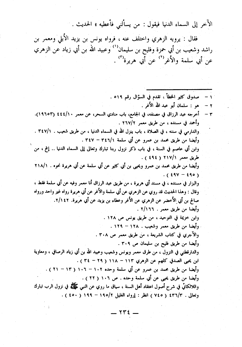 1733- وَسُئِلَ عَنْ حَدِيثِ أَبِي سَلَمَةَ بْنِ عَبْدِ الرَّحْمَنِ، وَأَبِي عَبْدِ اللَّهِ الْأَغَرِّ، عَنْ أَبِي هُرَيْرَةَ، قال رسول الله صلى الله عليه وَسَلَّمَ: يَنْزِلُ رَبُّنَا تَبَارَكَ وَتَعَالَى حِينَ يَبْقَى ثُلُثُ اللَّيْلِ الْآخِرُ إِلَى السَّمَاءِ الدُّنْيَا، فَيَقُولُ: مَنْ يَسْأَلُنِي فَأُعْطِيَهِ ... الْحَدِيثَ.