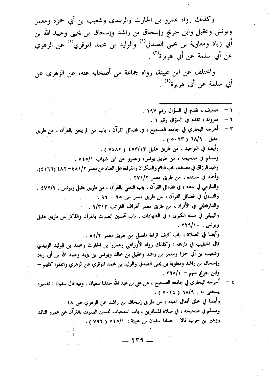 وَكَذَلِكَ رَوَاهُ عَمْرُو بْنُ الْحَارِثِ، وَالزُّبَيْدِيُّ، وَشُعَيْبُ بْنُ أَبِي حَمْزَةَ، وَمَعْمَرٌ، وَيُونُسُ، وَعُقَيْلٌ، وَابْنُ جُرَيْجٍ، وَإِسْحَاقُ بْنُ رَاشِدٍ، وَإِسْحَاقُ بْنُ يَحْيَى، وَعُبَيْدُ اللَّهِ بْنُ أَبِي زِيَادٍ، وَمُعَاوِيَةُ بْنُ يَحْيَى الصَّدَفِيُّ، وَالْوَلِيدُ بْنُ مُحَمَّدٍ الْمُوَقَّرِيُّ، عَنِ الزُّهْرِيِّ، عَنْ أَبِي سَلَمَةَ، عَنْ أَبِي هُرَيْرَةَ.