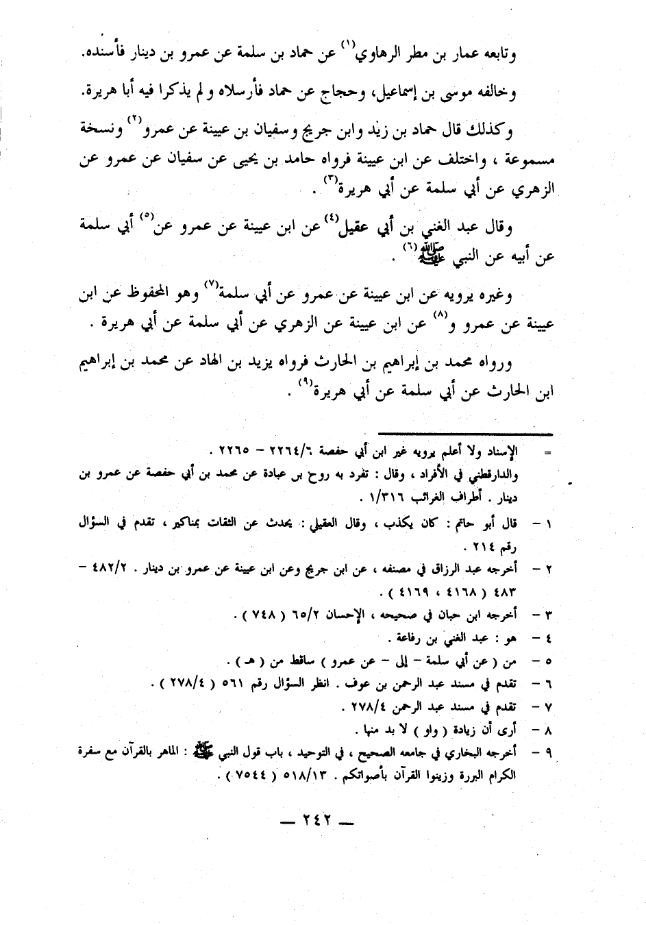 وَغَيْرُهُ يَرْوِيهِ عَنِ ابْنِ عُيَيْنَةَ، عَنْ عَمْرٍو، عَنْ أَبِي سَلَمَةَ وَهُوَ الْمَحْفُوظُ عَنِ ابْنِ عُيَيْنَةَ، عَنْ عَمْرٍو، وَعَنِ ابْنُ عُيَيْنَةَ، عَنِ الزُّهْرِيِّ، عَنْ أَبِي سَلَمَةَ، عَنْ أَبِي هُرَيْرَةَ.