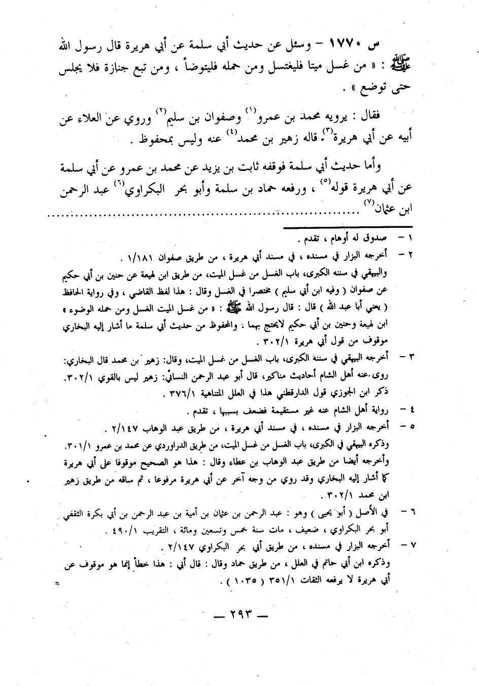 1770- وَسُئِلَ عَنْ حَدِيثِ أَبِي سَلَمَةَ، عَنْ أَبِي هريرة، قال رسول الله صلى الله عليه وَسَلَّمَ: مَنْ غَسَّلَ مَيِّتًا فَلْيَغْتَسِلْ، وَمَنْ حَمَلَهُ فَلْيَتَوَضَّأْ، وَمَنْ تَبِعَ جِنَازَةً فَلَا يَجْلِسْ حَتَّى تُوضَعَ.