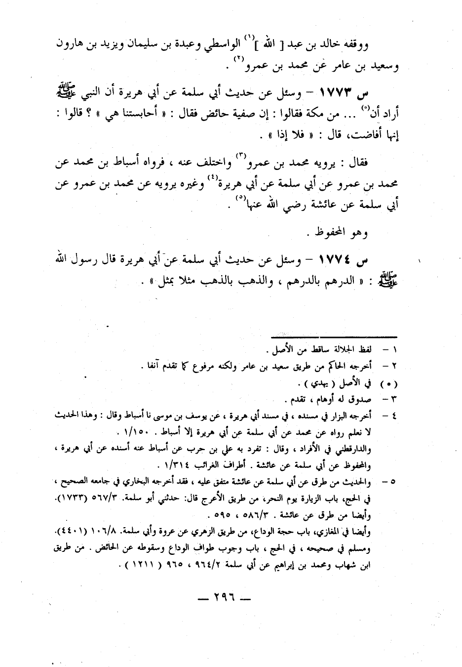 1773- وَسُئِلَ عَنْ حَدِيثِ أَبِي سَلَمَةَ، عَنْ أَبِي هريرة: أن النبي صلى الله عليه وسلم أَرَادَ أَنْ ... مِنْ مَكَّةَ، فَقَالُوا: إِنَّ صَفِيَّةَ حَائِضٌ، فَقَالَ: أَحَابِسَتُنَا هِيَ؟ قَالُوا: أَنَّهَا أَفَاضَتْ، قَالَ: فَلَا إِذًا.