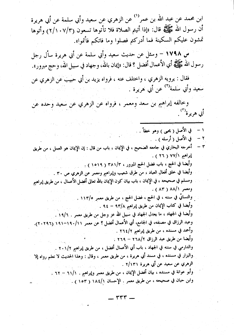 1798- وَسُئِلَ عَنْ حَدِيثِ سَعِيدٍ، وَأَبِي سَلَمَةَ، عَنْ أَبِي هُرَيْرَةَ، سَأَلَ رَجُلٌ رَسُولَ اللَّهِ صَلَّى اللَّهُ عَلَيْهِ وَسَلَّمَ: أَيُّ الْأَعْمَالِ أَفْضَلُ؟ قَالَ: إِيمَانٌ بِاللَّهِ، وَجِهَادٌ فِي سَبِيلِ اللَّهِ، وَحَجٌّ مَبْرُورٌ.