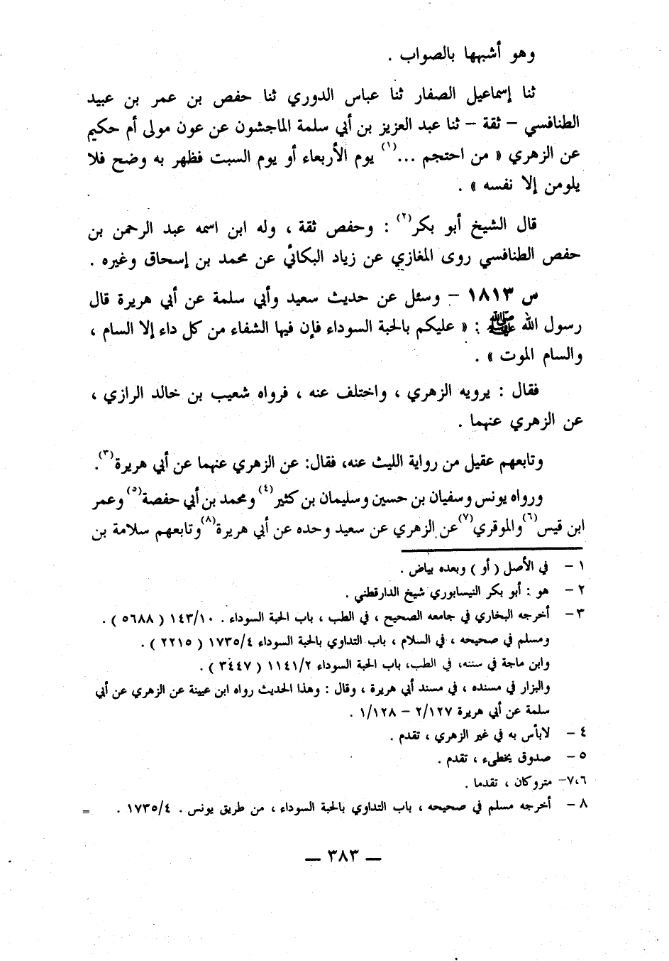 1813- وَسُئِلَ عَنْ حَدِيثِ سَعِيدٍ، وَأَبِي سَلَمَةَ، عَنْ أبي هريرة، قال رسول الله صلى الله عليه وسلم: عليكم بالحبة السوداء فإن فيها الشِّفَاءُ مِنْ كُلِّ دَاءٍ إِلَّا السَّامَ، وَالسَّامُ الْمَوْتُ.