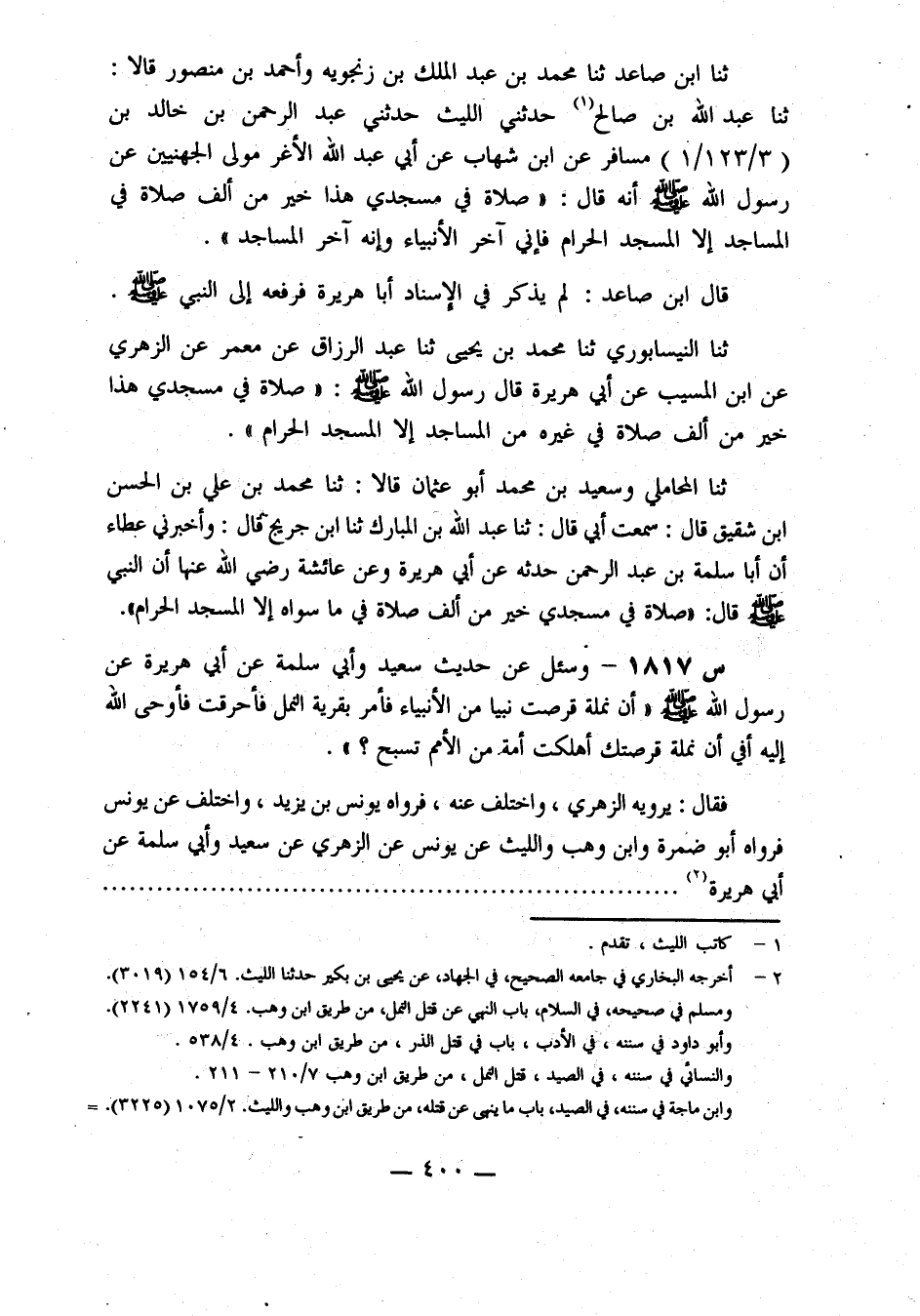 حدثنا ابن صاعد، حدثنا مُحَمَّدُ بْنُ عَبْدِ الْمَلِكِ بْنِ زَنْجُوَيْهِ، وَأَحْمَدُ بن منصور، قالا: حدثنا عَبْدُ اللَّهِ بْنُ صَالِحٍ، حَدَّثَنِي اللَّيْثُ، حَدَّثَنِي عَبْدُ الرَّحْمَنِ بْنُ خَالِدٍ بن مسافر، عن ابْنِ شِهَابٍ، عَنْ أَبِي عَبْدِ اللَّهِ الْأَغَرِّ مَوْلَى الْجُهَنِيِّينَ، عَنْ رَسُولِ اللَّهِ صَلَّى اللَّهُ عَلَيْهِ وَسَلَّمَ، أَنَّهُ قَالَ: صَلَاةٌ فِي مَسْجِدِي هَذَا خَيْرٌ مِنْ أَلْفِ صَلَاةٍ فِي الْمَسَاجِدِ إِلَّا الْمَسْجِدَ الْحَرَامَ، فَإِنِّي آخِرُ الْأَنْبِيَاءِ، وَإِنَّهُ آخِرُ الْمَسَاجِدِ.