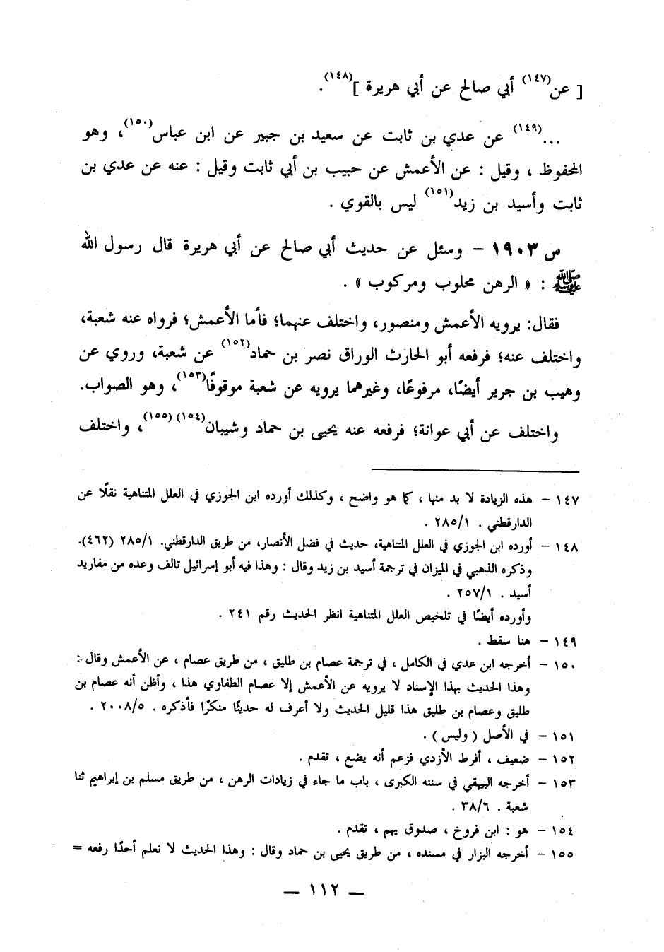1903- وَسُئِلَ عَنْ حَدِيثِ أَبِي صَالِحٍ، عَنْ أَبِي هريرة، قال رسول الله صلى الله عليه وَسَلَّمَ: الرَّهْنُ مَحْلُوبٌ وَمَرْكُوبٌ.