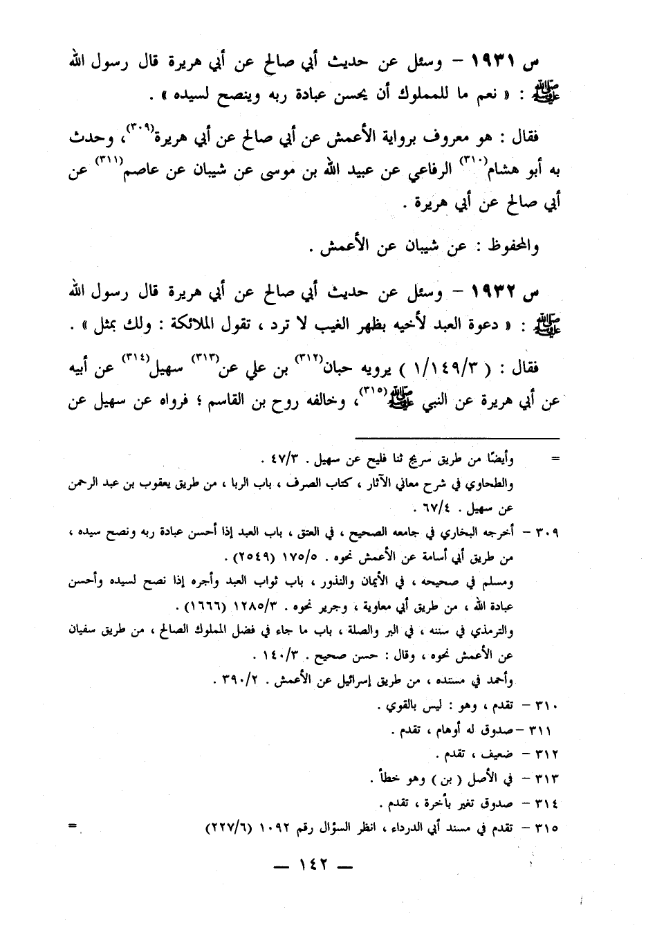 1931- وَسُئِلَ عَنْ حَدِيثِ أَبِي صَالِحٍ، عَنْ أَبِي هريرة، قال رسول الله صلى الله عليه وَسَلَّمَ: نِعْمَ مَا لِلْمَمْلُوكِ أَنْ يُحْسِنَ عِبَادَةَ رَبِّهِ وَيَنْصَحَ لِسَيِّدِهِ.