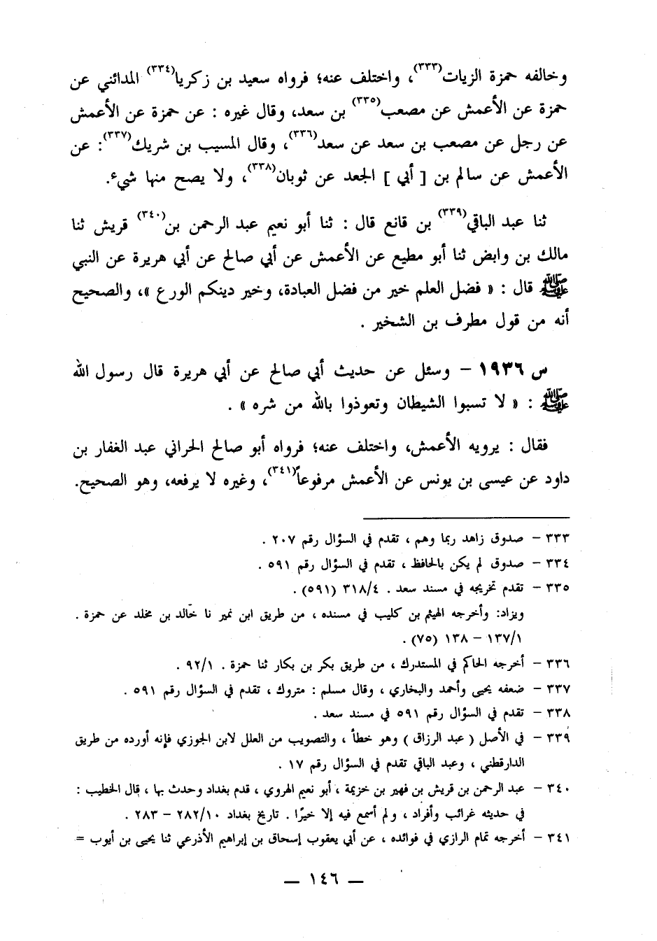 1936- وَسُئِلَ عَنْ حَدِيثِ أَبِي صَالِحٍ، عَنْ أَبِي هريرة، قال رسول الله صلى الله عليه وَسَلَّمَ: لَا تَسُبُّوا الشَّيْطَانَ وَتَعَوَّذُوا بِاللَّهِ مِنْ شَرِّهِ.