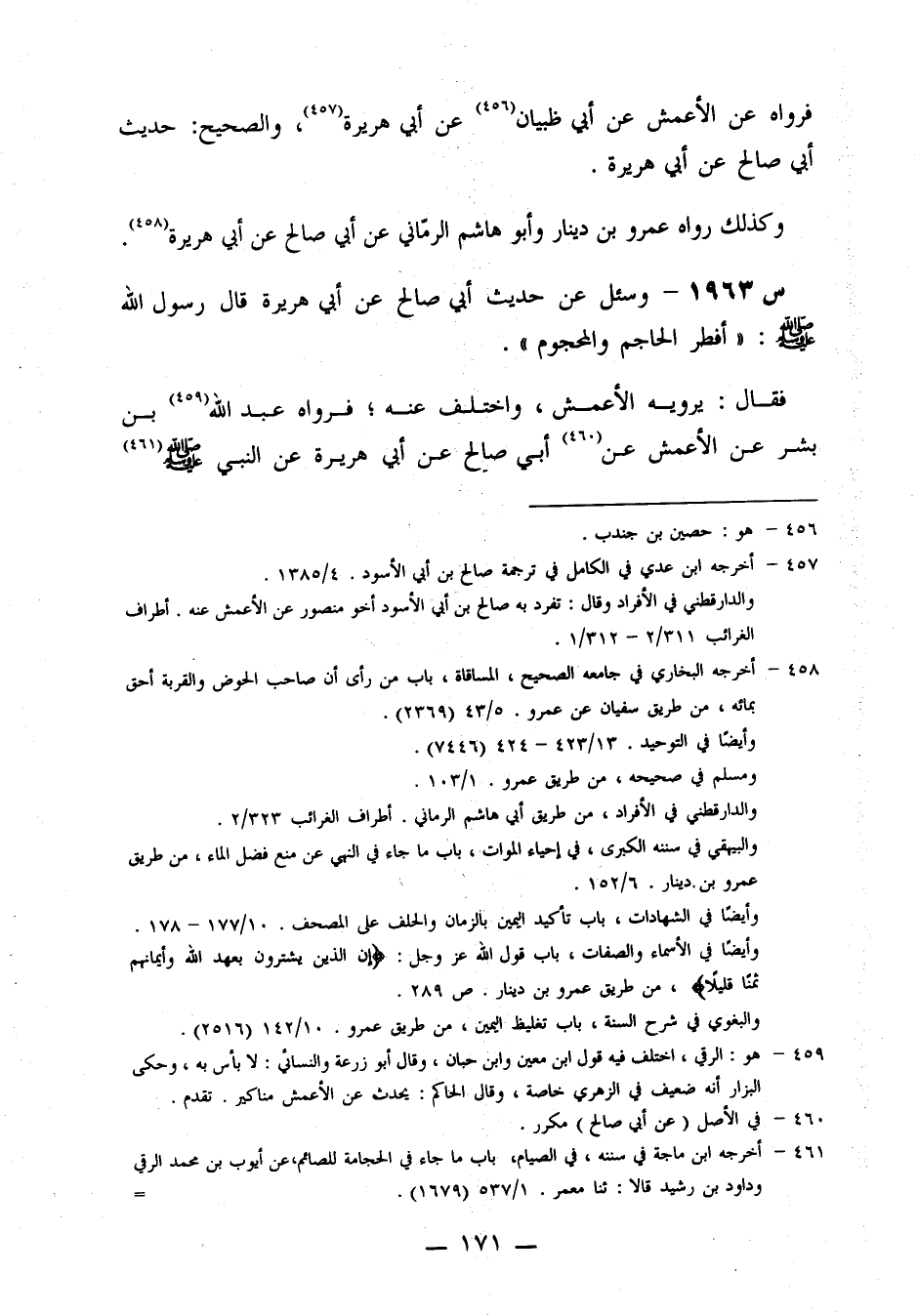 1963- وَسُئِلَ عَنْ حَدِيثِ أَبِي صَالِحٍ، عَنْ أَبِي هريرة، قال رسول الله صلى الله عليه وَسَلَّمَ: أَفْطَرَ الْحَاجِمُ وَالْمَحْجُومُ.