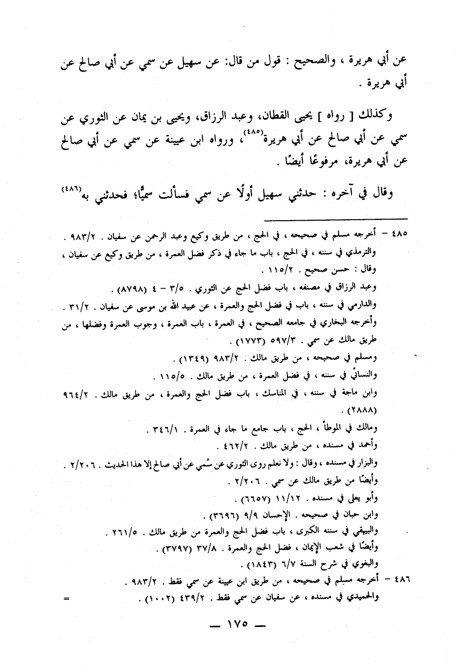 وَكَذَلِكَ رَوَاهُ يَحْيَى الْقَطَّانُ، وَعَبْدُ الرَّزَّاقِ، وَيَحْيَى بْنُ يَمَانٍ، عَنِ الثَّوْرِيِّ، عَنْ سُمَيٍّ، عَنْ أَبِي صَالِحٍ، عَنْ أَبِي هُرَيْرَةَ.