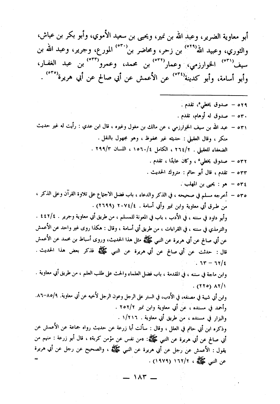 وَقَدِ اخْتُلِفَ عَنْهُ فَرَوَاهُ أَبُو مُعَاوِيَةَ الضَّرِيرُ، وَعَبْدُ اللَّهِ بْنُ نُمَيْرٍ، وَيَحْيَى بْنُ سَعِيدٍ الْأُمَوِيُّ، وَأَبُو بَكْرِ بْنُ عَيَّاشٍ، وَالثَّوْرِيُّ، وَعُبَيْدُ اللَّهِ بْنُ زَحْرٍ، وَمُحَاضِرُ بْنُ الْمُوَرِّعِ، وَجَرِيرٌ، وعبد الله بن سيف الخوارزمي، وعمار بْنُ مُحَمَّدٍ، وَعَمْرُو بْنُ عَبْدِ الْغَفَّارِ، وَأَبُو أُسَامَةَ، وَأَبُو كُدَيْنَةَ، عَنِ الْأَعْمَشِ، عَنْ أَبِي صَالِحٍ، عَنْ أَبِي هُرَيْرَةَ.