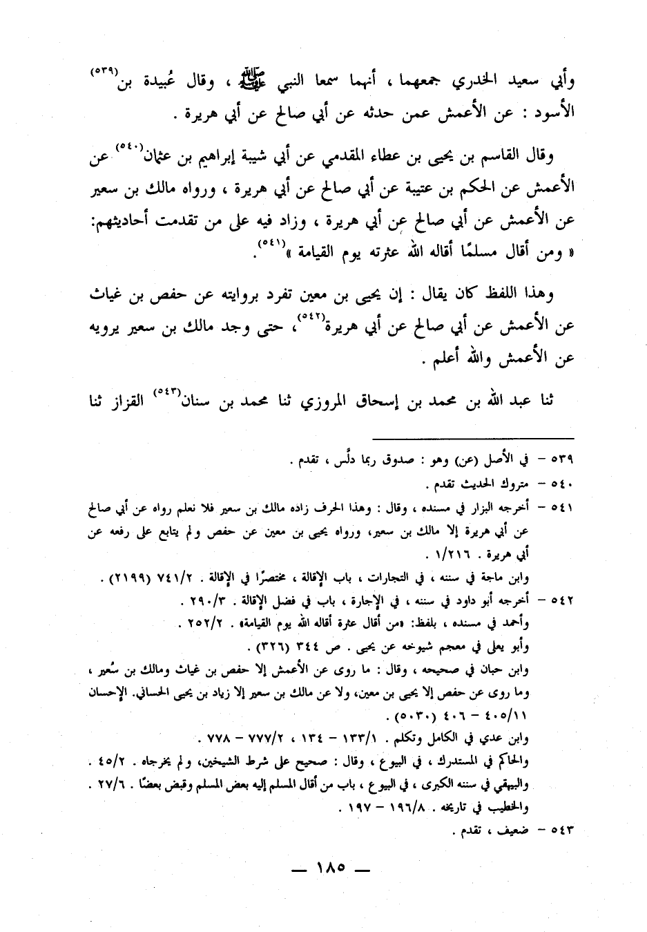 وَهَذَا اللَّفْظُ كَانَ يُقَالُ: إِنَّ يَحْيَى بْنَ مَعِينٍ تَفَرَّدَ بِرِوَايَتِهِ عَنْ حَفْصِ بْنِ غِيَاثٍ، عَنِ الْأَعْمَشِ، عَنْ أَبِي صَالِحٍ، عَنْ أَبِي هُرَيْرَةَ، حَتَّى وُجِدَ مَالِكُ ابْنُ سعير يرويه عن الأعمش، وَاللَّهُ أَعْلَمُ.