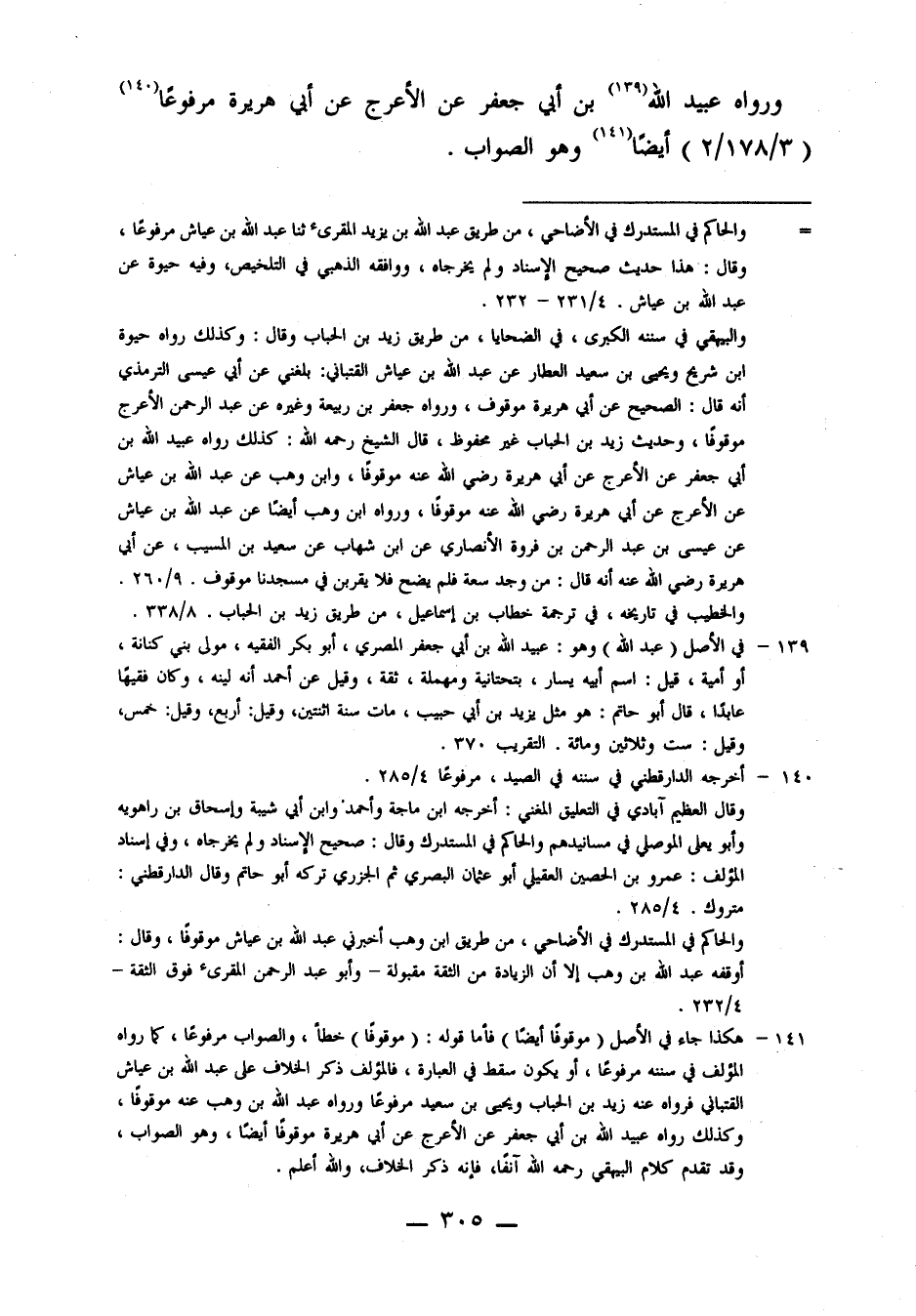 وَرَوَاهُ عُبَيْدُ اللَّهِ بْنُ أَبِي جَعْفَرٍ، عَنِ الْأَعْرَجِ، عَنْ أَبِي هُرَيْرَةَ مَرْفُوعًا أَيْضًا، وَهُوَ الصواب.