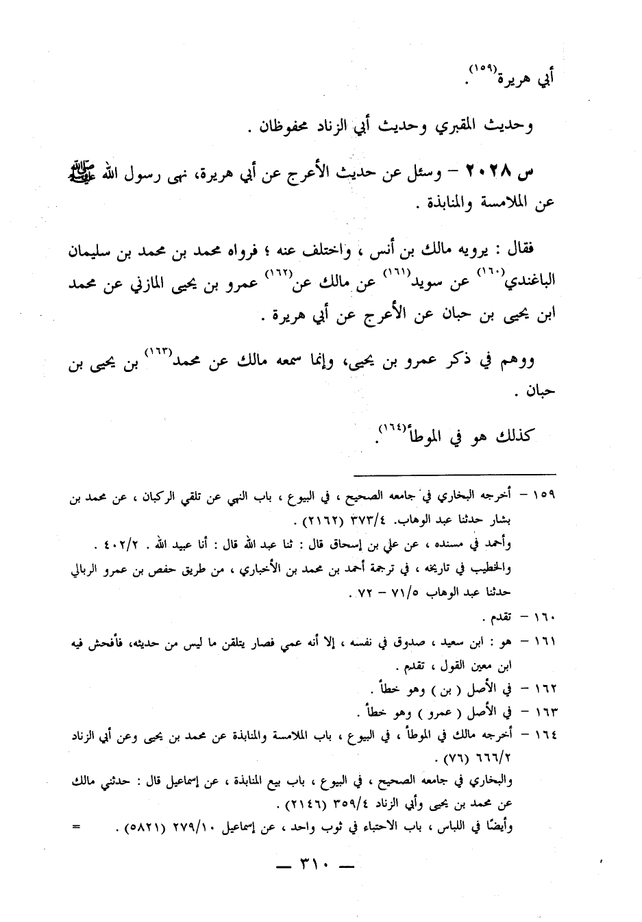 2028- وسئل عن حديث الأعرج، عن أبي هريرة: نَهَى رَسُولُ اللَّهِ صَلَّى اللَّهُ عَلَيْهِ وَسَلَّمَ عَنِ الْمُلَامَسَةِ وَالْمُنَابَذَةِ.