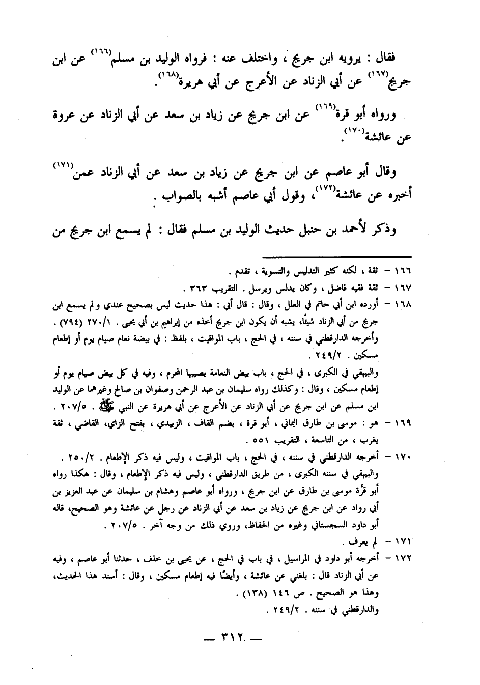 فَقَالَ: يَرْوِيهِ ابْنُ جُرَيْجٍ، وَاخْتُلِفَ عَنْهُ: فَرَوَاهُ الْوَلِيدُ بْنُ مُسْلِمٍ، عَنِ ابْنِ جُرَيْجٍ، عَنْ أَبِي الزِّنَادِ، عَنِ الْأَعْرَجِ، عَنْ أَبِي هُرَيْرَةَ.