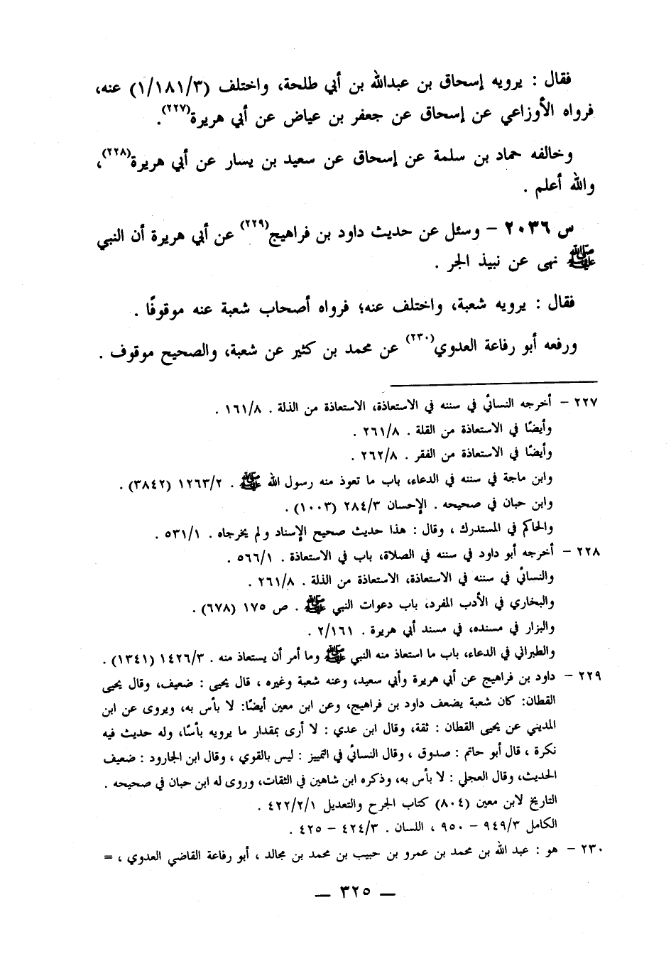 2036- وسئل عن حديث داود بن فراهيج، عن أبي هريرة؛ أن النبي صلى الله عليه وسلم نهى عن نبيذ الجر.